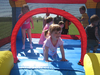 Dneska se u nás konal na fotbalovém hrišti Dětský den, od 14h tam byla pohádka, na kterou jsme nedorazili, Kika ještě spala, ale byla natěšená, tak šla spát hned po obědě, strašně se těšila na děti a skákání v hradu. Jak jsme dorazili, děti už řádili v hasičské pěně, Kika byla nadšená, zpočátku se zdráhala, ale pak by tam byla furt :-) A skákací hrad, to bylo něco pro ní, ještě tam byla klouzačka s míčkovým bazénkem a hasiči navezli nový písek na pískoviště a nové bábovky, no paráda, slunce pálilo, děti si užívali, bylo krásně!!! Přidávám i fotku jak Kika zalévá okrasnou trávu od Gábinků :-)